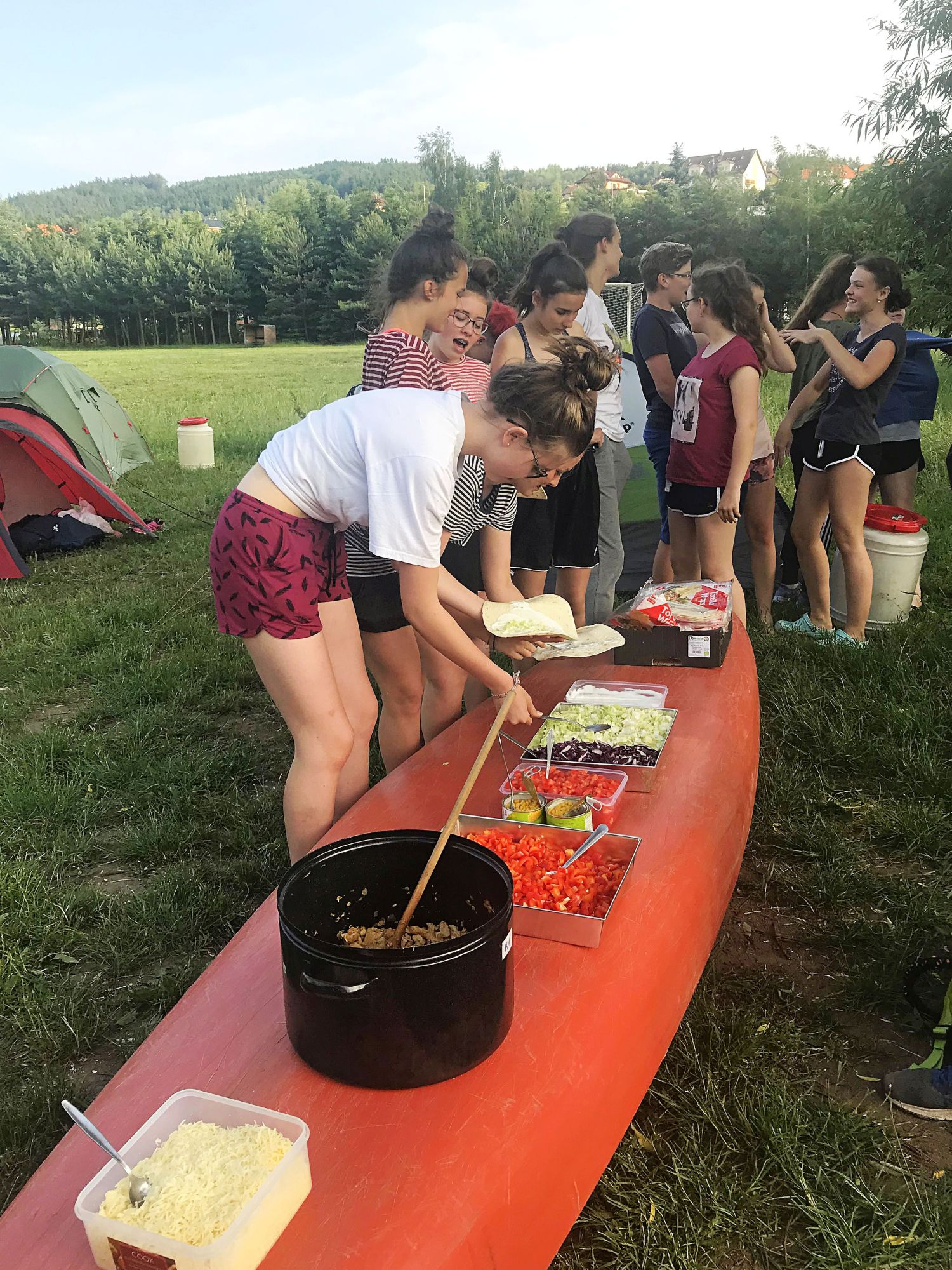 Oceňuji dostatek ovoce, zeleniny a mléčných výrobků, pestré snídaně, kvalitní večeře po dojezdu do kempu. A pomazánky na řece je klasika, bez nich by to nebylo ono. Speciální poděkování za zeleninové saláty a ranní kávu pro pedagoga :-)
